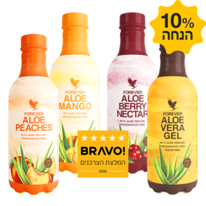 רביעיית משקאות ג'ל אלוורה – 99.7% של ג'ל אלוורה טהור...
