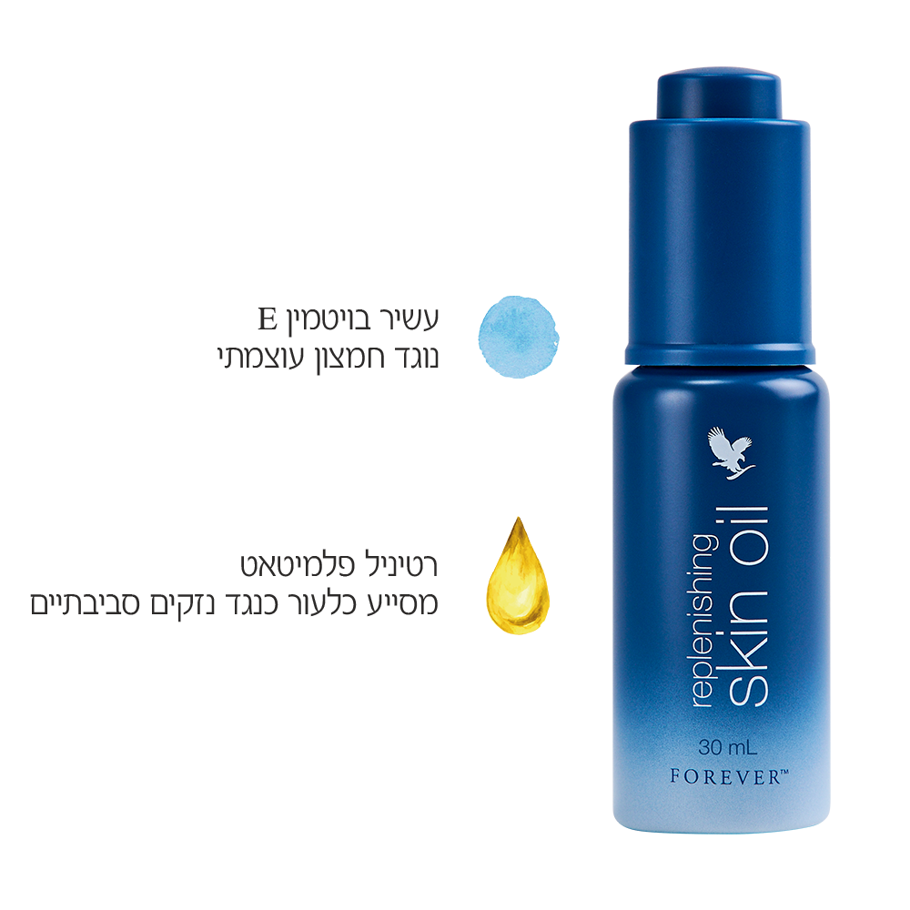 שמן להזנה עמוקה ולחידוש עור הפנים והגוף, מכיל את הויטמינים A E ו-C ומרכיבי הגנה אחרים. מכיל רטיניל פלמיטט ונוגדי חמצון נוספים הנלחמים ברדיקליים החופשיים וביובש. מסייע בשיקום וחידוש תאי העור.